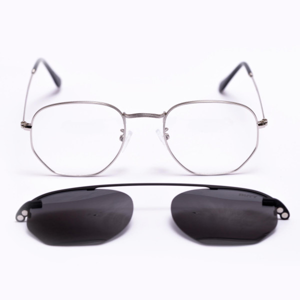 O oculos clipon hexagonal unissex é uma armação para grau que acompanha a frente Solar. Com sistema de imã, de forma magnética, eles se encaixam perfeitamente e e parte solar pode ser retirada quando quiser.