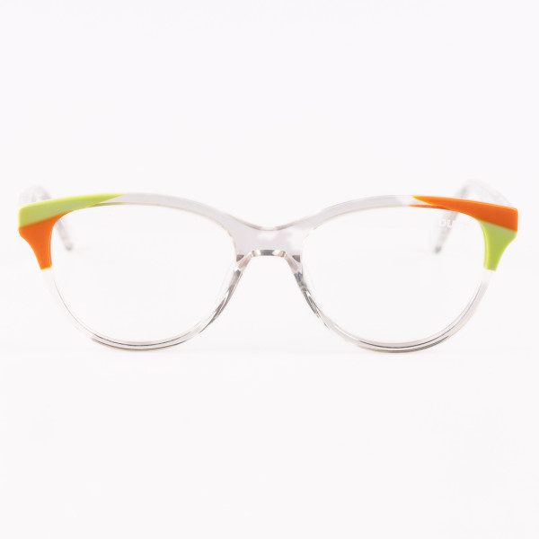 COR: TRANSPARENTE COM DETALHE FRONTAL EM VERDE E LARANJA