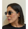 COR: DOURADO E HASTES DE METAL COM PONTERIRAS PRETAS EM ACETATO COM LENTES PRETAS