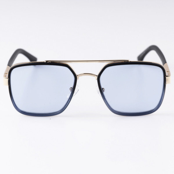 COR: DOURADO COM DETALHE FRONTAL EM ACETATO AZUL E LENTE AZUL