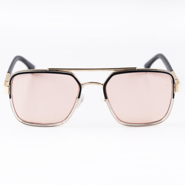 COR: DOURADO COM DETALHE FRONTAL EM ACETATO PRETO COM DEGRADE TRANSPARENTE E LENTE ROSA