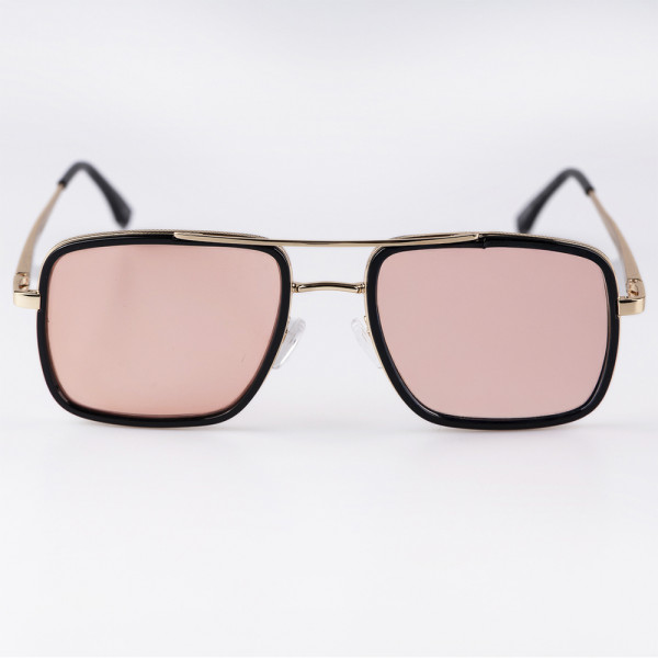 COR: DOURADO COM DETALHE FRONTAL EM ACETATO PRETO E LENTE ROSA